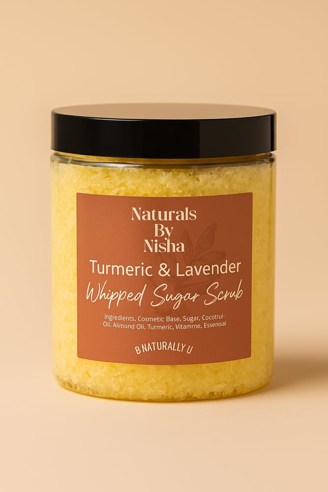 Glow on, sis. This creamy whipped scrub gently buffs away dull skin while the healing blend of turmeric and lavender calms inflammation and evens skin tone. Infused with nourishing coconut and almond oils, this exfoliant leaves your skin feeling smooth, radiant, and baby soft. Self-care just got soulful.